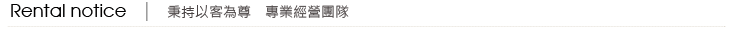 *租車須知 1.租車須知: (A) 須簽定租車合約、請攜帶駕照辦理(汽車請攜帶駕照及身分證) (B)假日建議於十天前預約 (C)租賃以小時划算計小時;以天划算計日租 (D)假日(六、日)預約;請於12:00前辦理取車手續~ (E)假日(六、日)已完成預約日租者,恕無法於取車時更改為時租 (F)機車時租,低消100元 2.保險內容:本公司車輛之租金均內含強制險 3.注意事項: (A)經雙方面試,車無誤、引擎正常、剎車良好,才交車。 (B)不得供他人駕駛、營業、酒後駕車。 (C)因車輛屬於動產部分,不可預測之部分較多,本公司保有為訂車客戶調度同等級車輛之權利 (D)付定後,車款變更或取車日變更,請於原定日前十天提出,以利車輛調度,逾期恕無法受理變更。 (E)若取消訂車,於取車前十日提出,定金可延期保留三個月內使用,申請延期者恕不退費。除天災、陸警、海警 退款扣除銀行手續費外,其他因素取消均以(F)規定辦理 (F)辦理退定 -(退款另加手續費100元需由貴賓支付) 貴賓如於預定租車時間十日前辦理退定,本公司退還定金100%。 貴賓如於預定租車時間七~九日前辦理退定,本公司退還定金50%。 貴賓如於預定租車時間四~六日前辦理退定,本公司退還定金40%。 貴賓如於預定租車時間兩~三日前辦理退定,本公司退還定金30%。 貴賓如於預定租車時間一日前辦理退定,本公司退還定金20%。 當日到達或怠於通知者則是不退還承租人已付全部定金。 *貼心服務 本店租車提供宜蘭縣內道路救援服務,還提供了礁溪店、宜蘭店、羅東店甲租乙還服務。並提供宜蘭縣旅遊規劃, 且因每位客戶駕駛習慣不一定相同,故其不習慣不順手皆可換車(更換之車輛以現場空車為主)